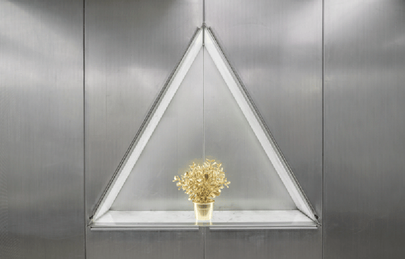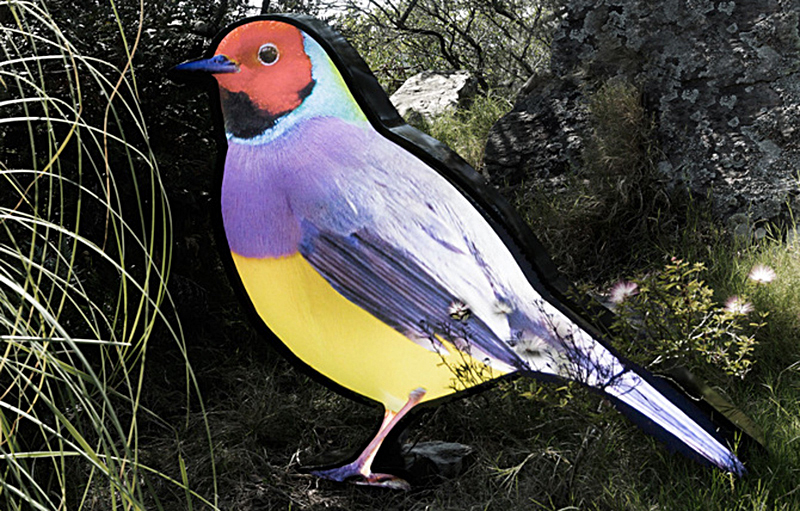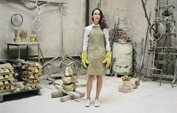 Sus obras tienen una fuerte identidad signada por piedras gigantes, matorrales de plantas que enmarcan personas vestidas con plumas u obras gigantescas de un dorado que transmite energía de solo verlo.